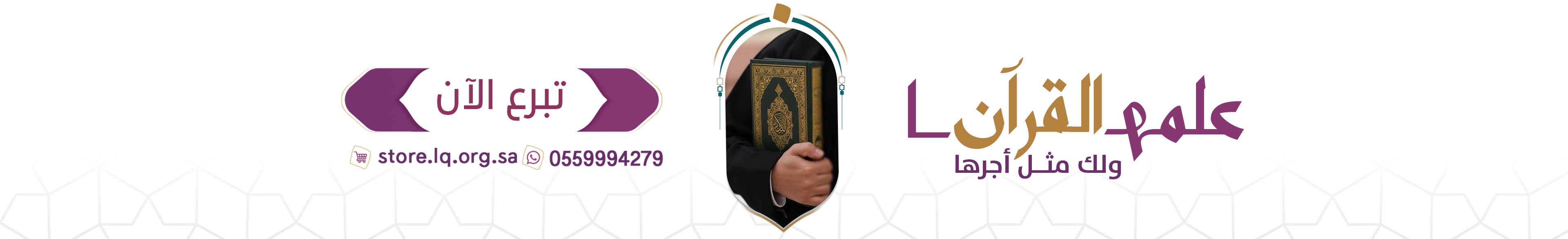 علمها القرآن ولك مثل أجرها ساهم لنفسك أو من تحب في مشروع علمها القرآن لتنال أجورا عظيمة في تعليم كتاب الله .. فكل حرف بحسنة والحسنة بعشر أمثالها والله يضاعف لمن يشاء